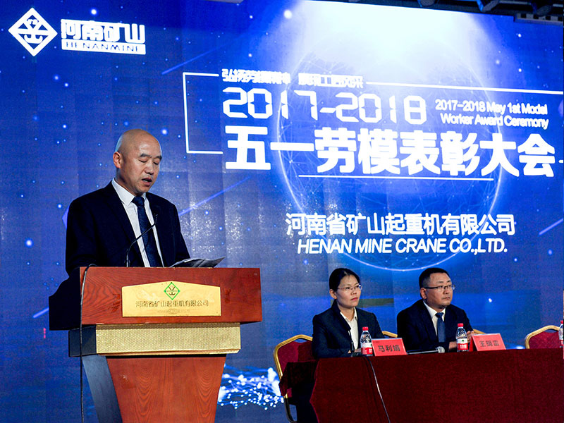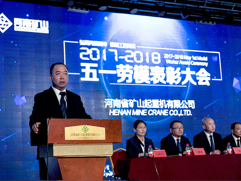 公司創(chuàng)始人、黨委書記崔培軍發(fā)表重要講話。他首先向全體員工致以節(jié)日的問候,向獲獎勞模表示祝賀!感謝大家為公司所做出的努力與貢獻。他就勞模精神、工匠精神、質量比武、生產(chǎn)工期、素質素養(yǎng)五個方面提出希望和要求。希望在勞模精神的鼓舞下,全體員工要抓緊生產(chǎn),服務客戶。繼續(xù)深化質量月活動。立足本職崗位,再創(chuàng)新的佳績。踐行工匠精神,以更高標準嚴格要求自己。團結一心,眾志成城,努力將河南礦山打造成為一個享有盛譽的起重企業(yè)。