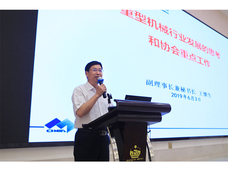 ▲中國重型機(jī)械工業(yè)協(xié)會副理事長兼秘書長王繼生致辭并作《重型機(jī)械行業(yè)發(fā)展的思考和協(xié)會工作報告》
